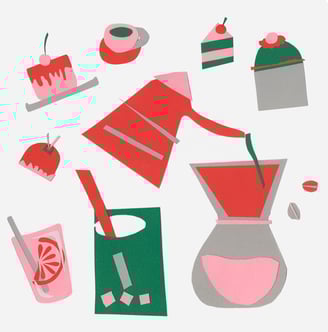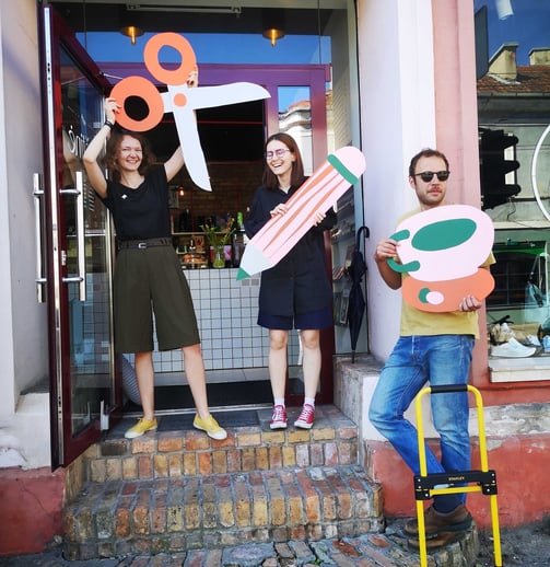 Every year the 1st of September is a significant celebration at Raštinė cafe. Last year it was all about not being afraid to start something new and being a newbie at something new. We asked baristas working there to create some collages about stationary what was a thing most of them did for the first time. The window I made and further communication visuals were also based on these collages.