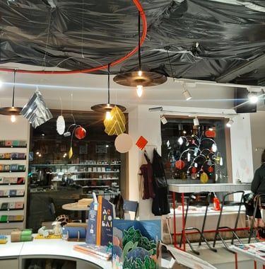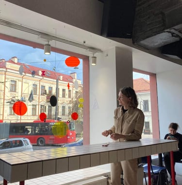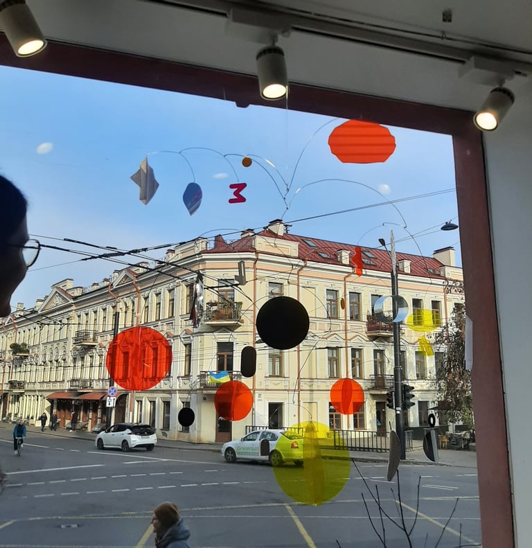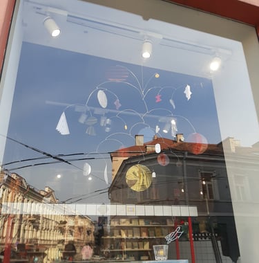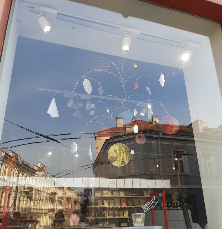 I made two main mobiles for two places of Raštinė cafe and few smaller ones for extra accents in spaces. Colors and details were picked and sorted to be suited for the interiors of both places.