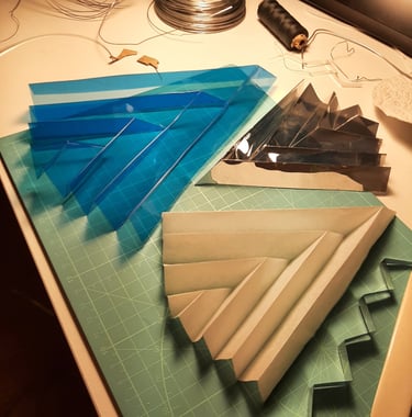 Christmas decorations made out of plexiglass and other comercial process material leftowers. As the idea was to communicate about the future and our remarkable impact to it nothing tels more about balance that a mobile structure. Every piece depends on each other, every piece makes it's shiny bling or has a see through moment. Even when one piece starts to move, the whole system transforms and moves together.