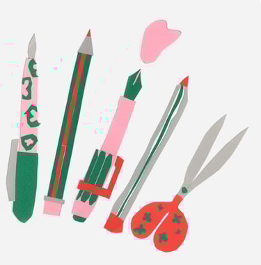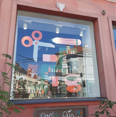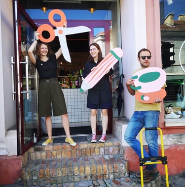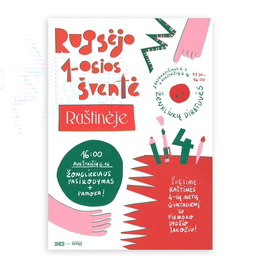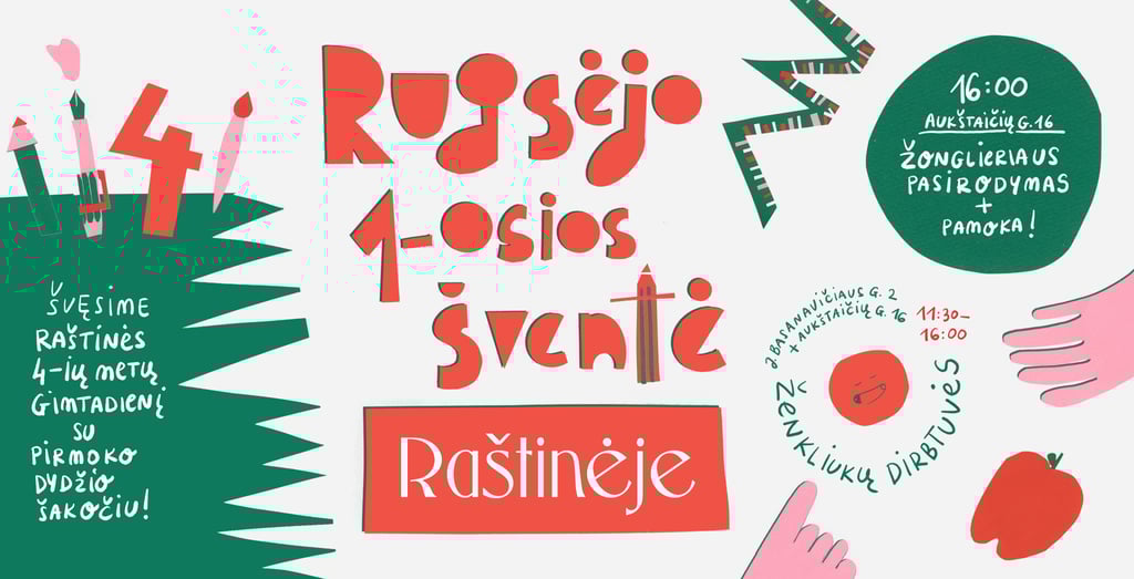 Every year the 1st of September is a significant celebration at Raštinė cafe. Last year it was all about not being afraid to start something new and being a newbie at something new. We asked baristas working there to create some collages about stationary what was a thing most of them did for the first time. The window I made and further communication visuals were also based on these collages.